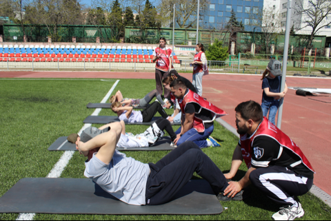 Перед выполнением нормативов семейные команды выполнили разминку с судьей Центра тестирования ГТО Миланой Терещенко.