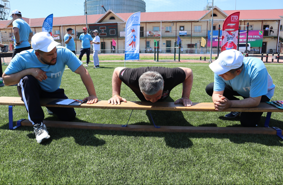 Перед выполнением нормативов команды выполнили разминку с судьей Центра тестирования ГТО Екатериной Альсовой.